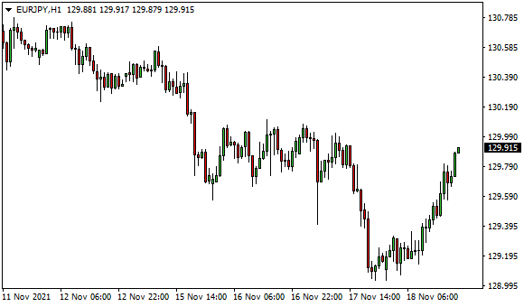 Vývoj měnového páru EUR/JPY (1hodinový graf - H1):