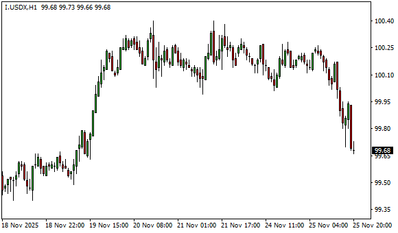 Vývoj dolarového indexu USDX (1hodinový graf - H1):