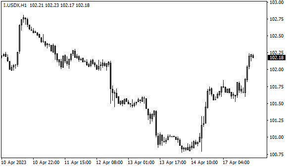 Vývoj dolarového indexu USDX (1hodinový graf - H1):