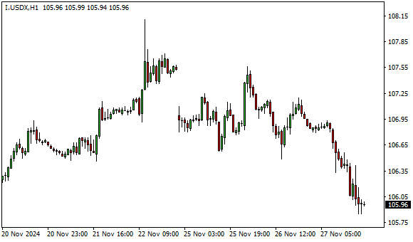Vývoj dolarového indexu USDX (1hodinový graf - H1):