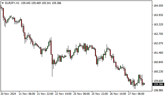Vývoj měnového páru EUR/JPY (1hodinový graf - H1):
