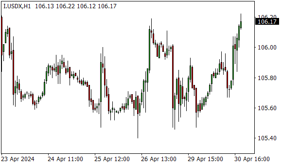 Vývoj dolarového indexu USDX (1hodinový graf - H1):