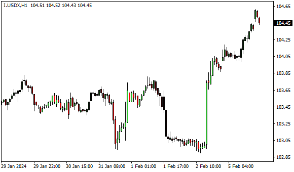 Vývoj dolarového indexu USDX (1hodinový graf - H1):