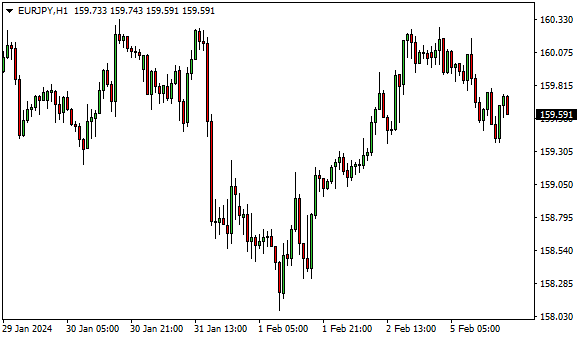Vývoj měnového páru EUR/JPY (1hodinový graf - H1):