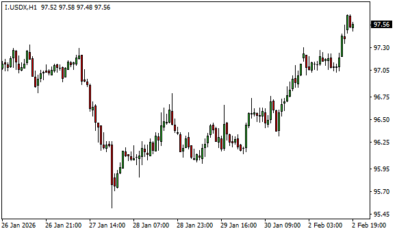 Vývoj dolarového indexu USDX (1hodinový graf - H1):