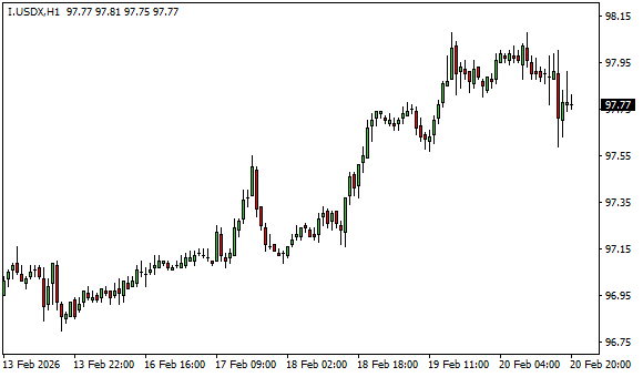Vývoj dolarového indexu USDX (1hodinový graf - H1):