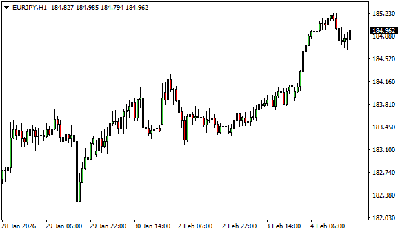 Vývoj měnového páru EUR/JPY (1hodinový graf - H1):