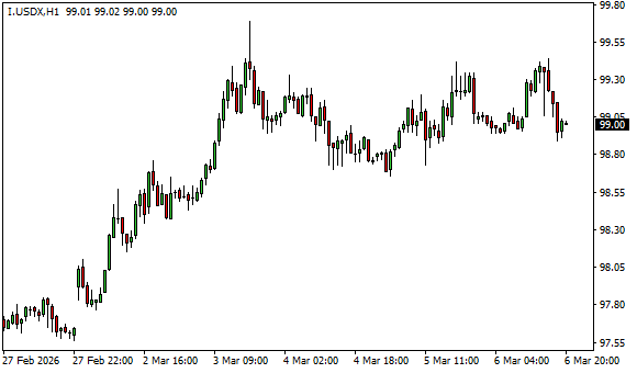 Vývoj dolarového indexu USDX (1hodinový graf - H1):