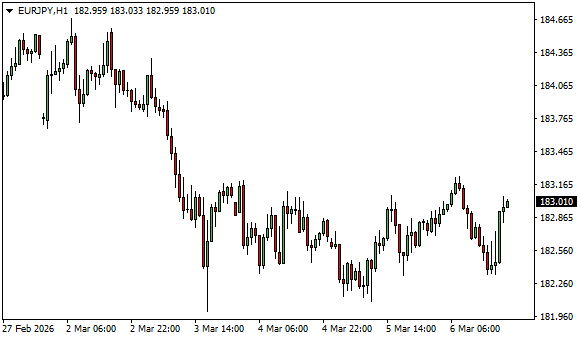Vývoj měnového páru EUR/JPY (1hodinový graf - H1):