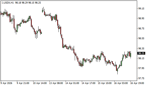 Vývoj dolarového indexu USDX (1hodinový graf - H1):