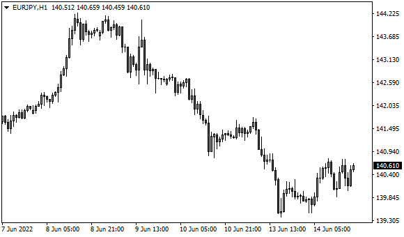 Vývoj měnového páru EUR/JPY (1hodinový graf - H1):