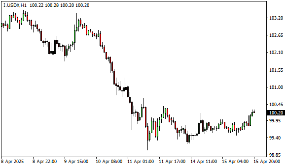 Vývoj dolarového indexu USDX (1hodinový graf - H1):