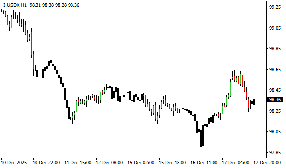 Vývoj dolarového indexu USDX (1hodinový graf - H1):