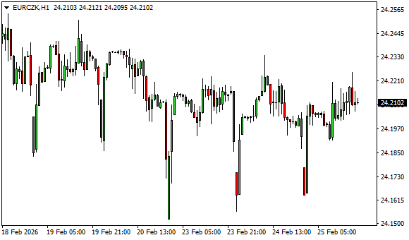 Vývoj měnového páru EUR/CZK (1hodinový graf - H1):