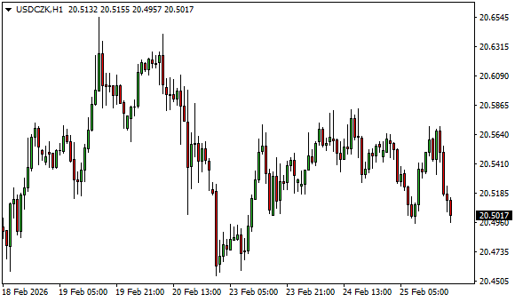 Vývoj měnového páru USD/CZK (1hodinový graf - H1):
