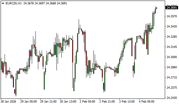Vývoj měnového páru EUR/CZK (1hodinový graf - H1):