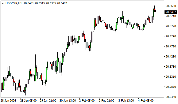 Vývoj měnového páru USD/CZK (1hodinový graf - H1):