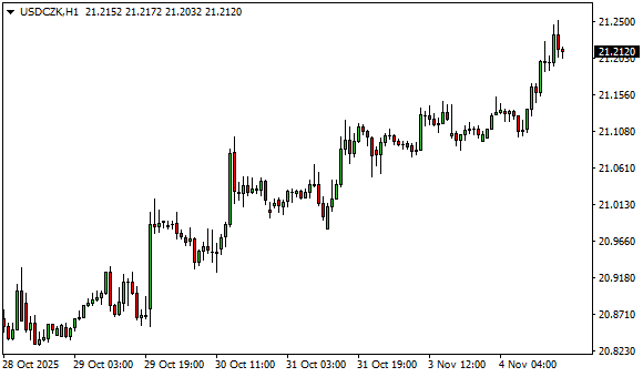 Vývoj měnového páru USD/CZK (1hodinový graf - H1):