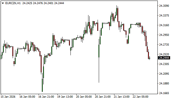 Vývoj měnového páru EUR/CZK (1hodinový graf - H1):