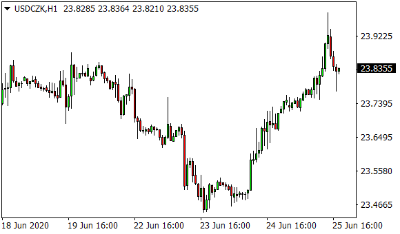 Vývoj měnového páru USD/CZK (1hodinový graf - H1):