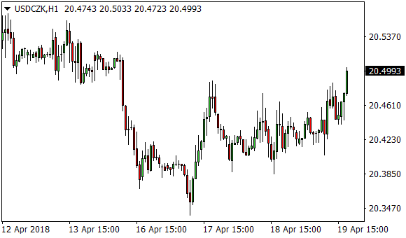 Vývoj měnového páru USD/CZK (1hodinový graf - H1):