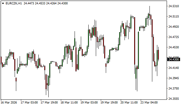 Vývoj měnového páru EUR/CZK (1hodinový graf - H1):