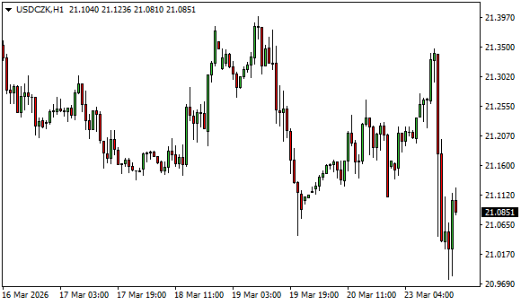 Vývoj měnového páru USD/CZK (1hodinový graf - H1):