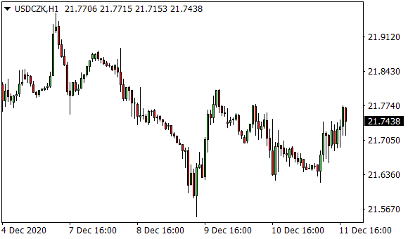 Vývoj měnového páru USD/CZK (1hodinový graf - H1):