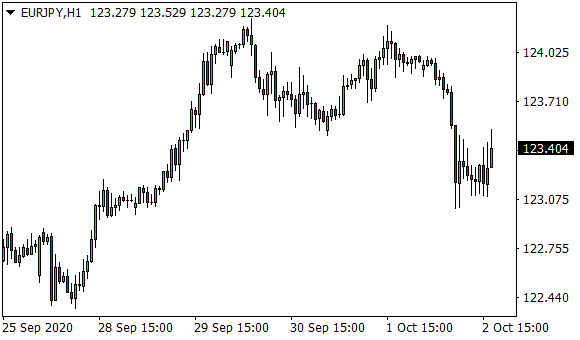 Vývoj měnového páru EUR/JPY (1hodinový graf – H1):