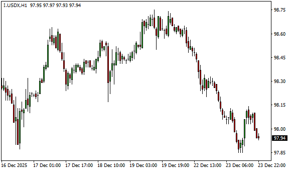 Vývoj dolarového indexu USDX (1hodinový graf - H1):