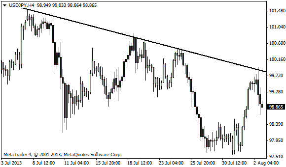 Vývoj měnového páru USD/JPY (4hodinový graf – H4):