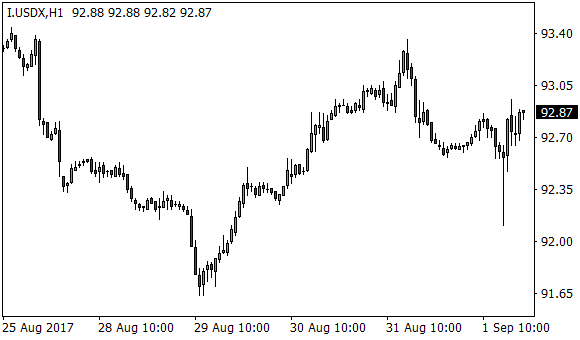 Vývoj dolarového indexu USDX (1hodinový graf – H1):
