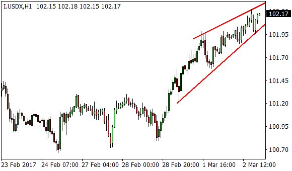 Vývoj dolarového indexu USDX (1hodinový graf – H1):