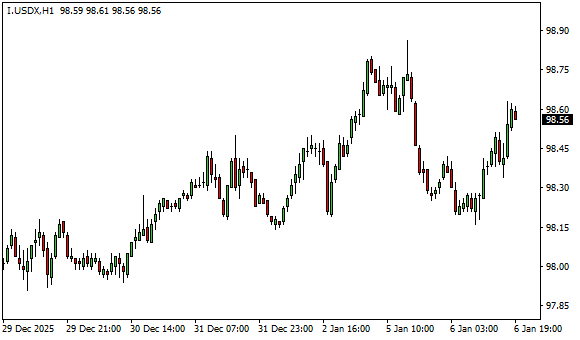 Vývoj dolarového indexu USDX (1hodinový graf - H1):