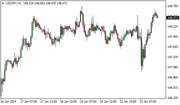 Vývoj měnového páru USD/JPY (1hodinový graf - H1):