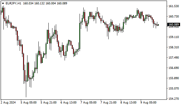 Vývoj měnového páru EUR/JPY (1hodinový graf - H1):