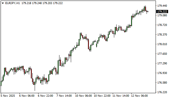 Vývoj měnového páru EUR/JPY (1hodinový graf - H1):