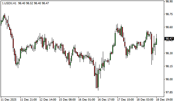 Vývoj dolarového indexu USDX (1hodinový graf - H1):