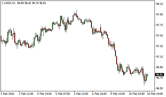 Vývoj dolarového indexu USDX (1hodinový graf - H1):