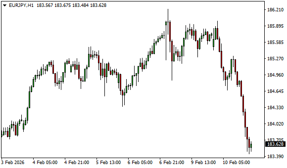 Vývoj měnového páru EUR/JPY (1hodinový graf - H1):