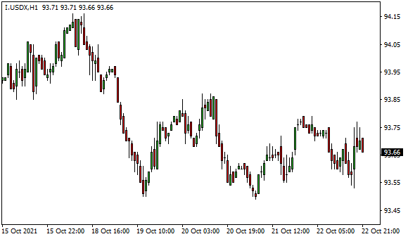 Vývoj dolarového indexu USDX (1hodinový graf – H1):