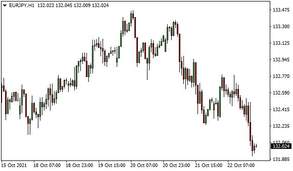 Vývoj měnového páru EUR/JPY (1hodinový graf – H1):