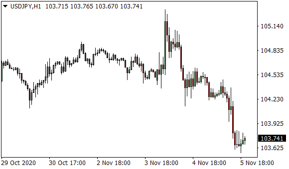 Vývoj měnového páru USD/JPY (1hodinový graf – H1):