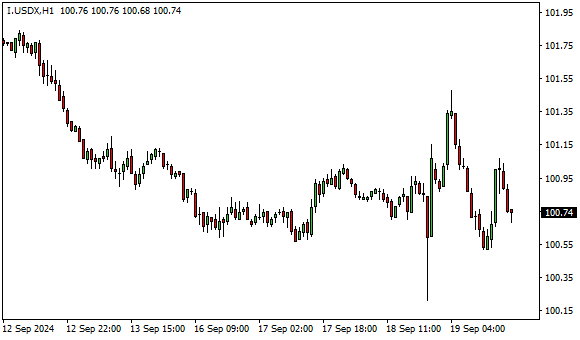 Vývoj dolarového indexu USDX (1hodinový graf - H1):
