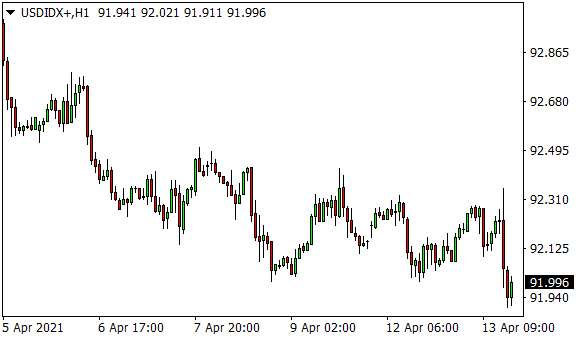Vývoj dolarového indexu USDX (1hodinový graf - H1):