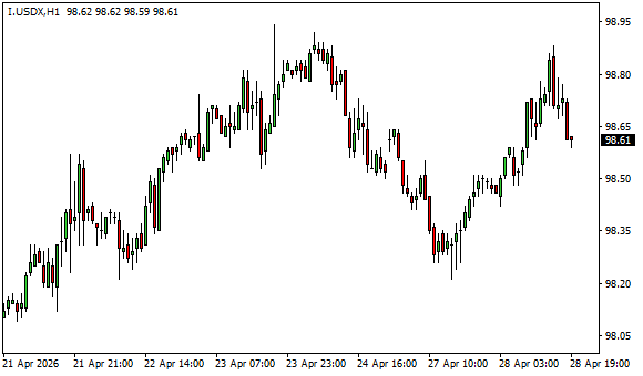 Vývoj dolarového indexu USDX (1hodinový graf - H1):