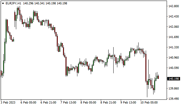 Vývoj měnového páru EUR/JPY (1hodinový graf - H1):