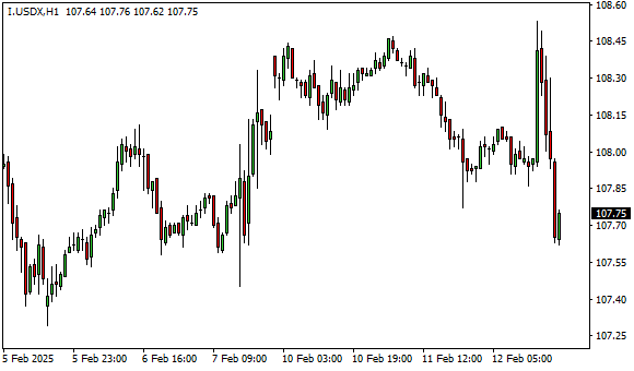 Vývoj dolarového indexu USDX (1hodinový graf - H1):