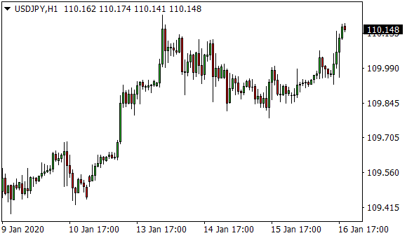 Vývoj měnového páru USD/JPY (1hodinový graf – H1):
