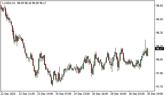 Vývoj dolarového indexu USDX (1hodinový graf - H1):